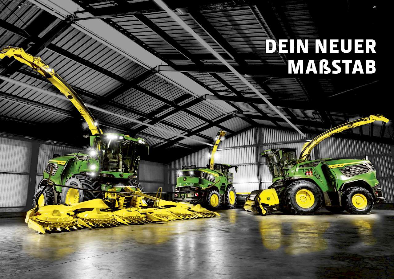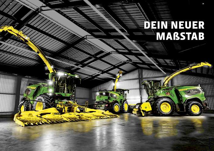 Irrtum, Nachtrag, jederzeitige Änderungen und Widerruf vorbehalten. Eventuell anfallende Gebühren sind nicht berücksichtigt. Bearbeitung und Genehmigung erfolgt durch die John Deere Bank S.A., Luxemburg. Es gelten unsere allgemeinen Geschäftsbedingungen. Weitere Informationen erhalten Sie von Ihrem John Deere Vertriebspartner vor Ort oder von der John Deere Bank S.A., Luxembourg, Tel.: +49 621-829 0500. Für Modelljahr 2026 Feldhäcksler, bei teilnehmenden Vertriebspartnern.