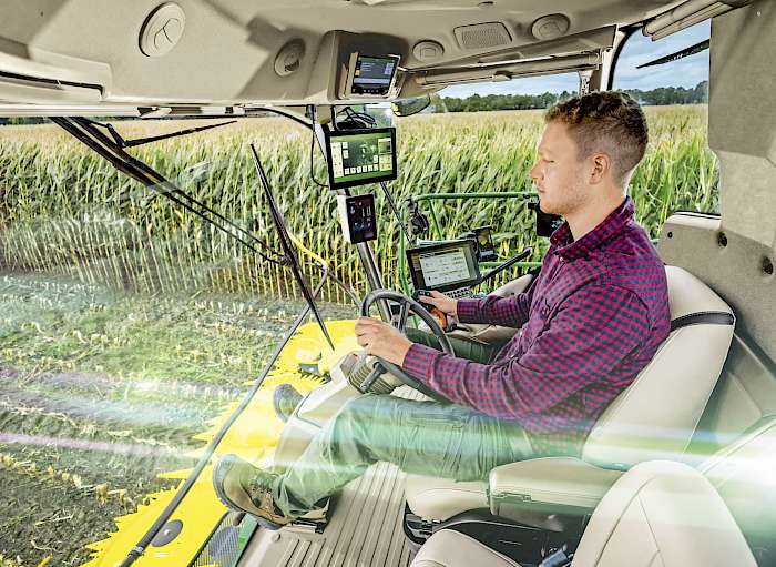 Ground Speed Automation sorgt für eine automatisch angepasste Fahrgeschwindigkeit und Motordrehzahl. Für schnellere Wendemanöver am Vorgewende kommt das ProTouch Harvest System zum Einsatz, welches die Vorgewendeprozesse mit einem Klick automatisch abwickelt. Zur einfachen Anhängerbefüllung gibt es nun das neue Active- Fill Controll System. Diese übernimmt die automatische Steuerung des Auswurfkrümmers und füllt den Anhänger entsprechend der Vorgaben.