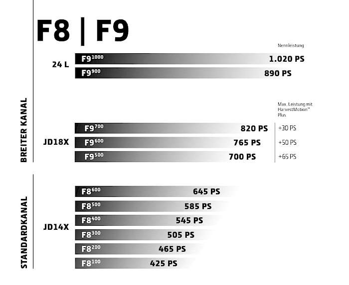 Wählen Sie aus drei leistungsstarken Motoren, die alle mit der bewährten HarvestMotion-Technologie ausgestattet sind. Der neue JD14X Motor bietet optimale Leistung bei niedrigem Kraftstoffverbrauch und reduzierter Drehzahl. Perfekt abgestimmt und synchronisiert auf höchsten Durchsatz!