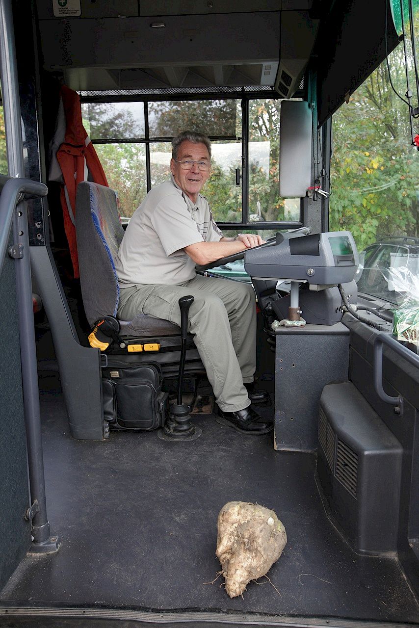 Unter den Besuchern war auch Busfahrer Rüdiger Starnat. "Das ist ein ganz schön großer Fuhrpark", sagte der erfahrene Lenker und erinnerte sich an den Beginn der DDR als Betriebe mit einem ähnlichen Prinzip Technik für die Bauern vorhielten. Im Fall des Lohnunternehmens Metzger sind es über 100 Maschinen, die für Kunden im Umkreis von 35 bis 100 Kilometer die Feldpflege und auch die Ernte übernehmen. Die meisten Maschinen waren natürlich unterwegs, doch mit dem Rübenroder hatten die Kinder Glück. Er war für Wartungsarbeiten in der Firma und konnte auch im Inneren betrachtet werden. Als erstes waren die Mädchen im Fahrerhaus und staunten bei soviel Technik nicht schlecht.
