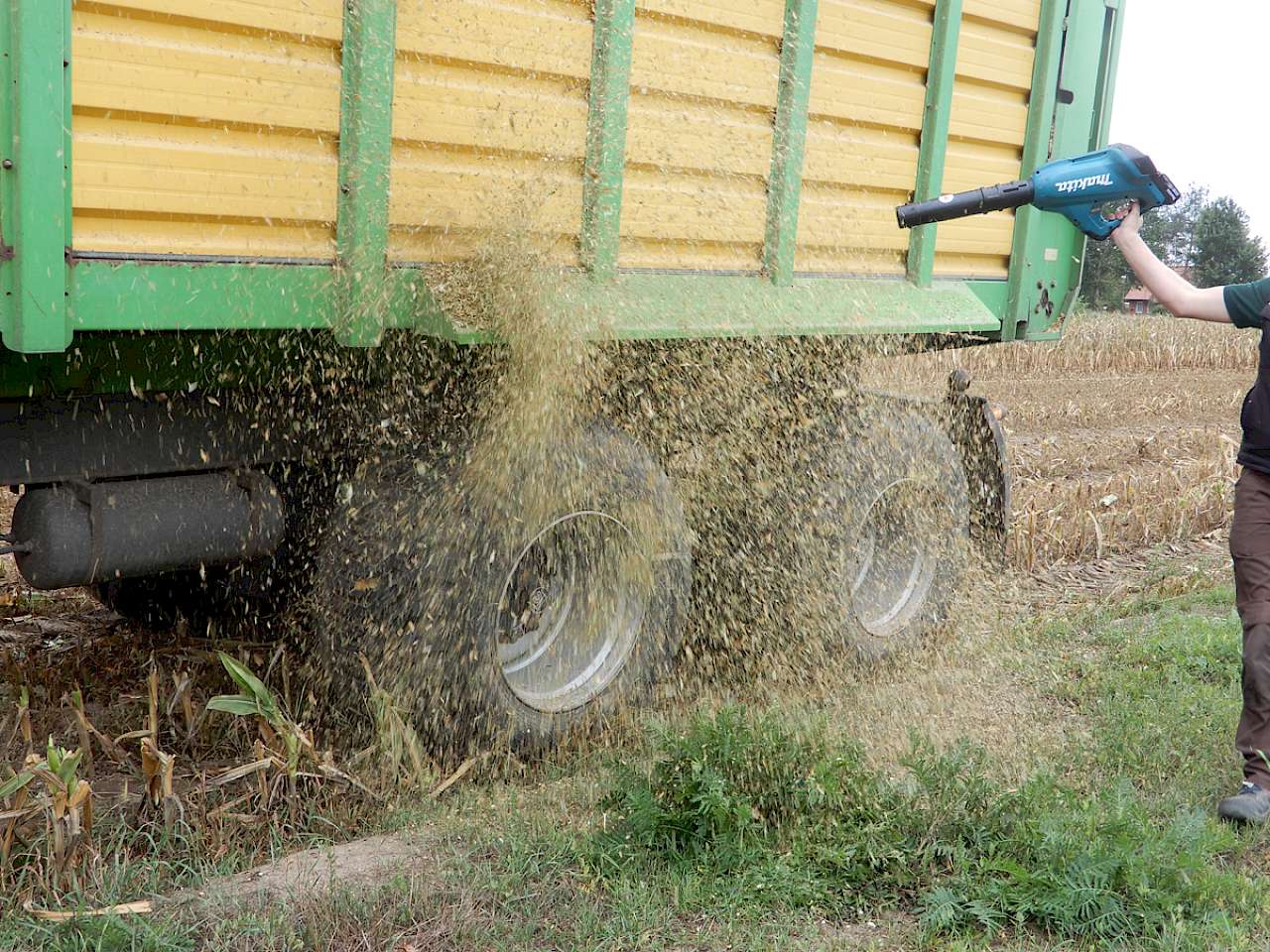 - Saubere Straßen fangen schon bei der Ladungssicherung an. Mais, der beim Anhäckseln auf Kotflügeln oder dem Schlepperdach gelandet ist, ist vor der Einfahrt auf die Straße mit dem Handfeger oder dem Laubbläser zu entfernen.