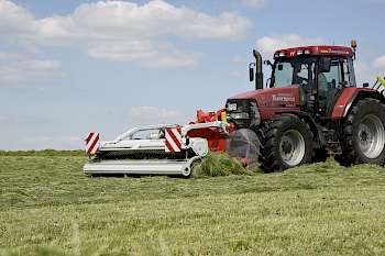Der Lohnbetrieb Reermann liegt in Brilon im Hochsauerland. Hauptkundengruppen sind Milchvieh- und Mastrinderhalter. Die meisten davon sind Familienbetriebe mit 50 bis maximal 250 Tieren, die generationsübergreifend auf den Betrieben ohne Fremdarbeitskräfte arbeiten. Das Mähen und Wenden übernehmen die Landwirte zum größten Teil in Eigenregie. „Wenn es um die Futterbergung geht, kommen wir dann ins Spiel. Gerade das Schwaden hat sich für uns als Wachstumsgeschäft entwickelt. Die Kunden haben gemerkt, dass es ihnen Geld spart, wenn wir mit unserem Schwader vor dem Häcksler arbeiten, der nach Zeit abgerechnet wird, da dieser dann deutlich schlagkräftiger ist. Somit benötigen wir für die gleiche Fläche weniger Zeit. Die Kosten, die zusätzlich für den Kunden durch das Schwaden entstehen, werden aufgefangen. Wichtig in der gesamten Grassilageerntekette ist allerdings, dass die Futterqualität am Ende top ist. Dann ist der Kunde zufrieden“, erklärt Stefan Reermann, der das Unternehmen zusammen mit seinem Vater führt.